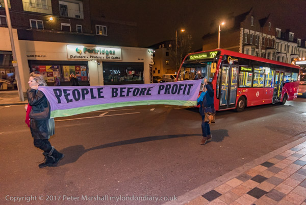 The protest continues outside Clapham Junction