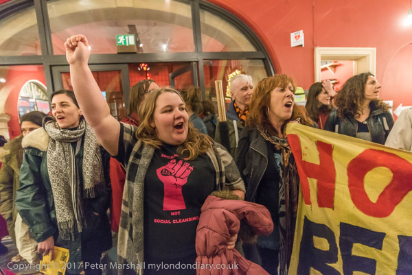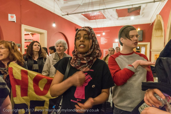 The march arrives at Battersea Arts Centre