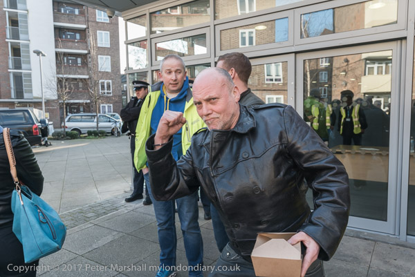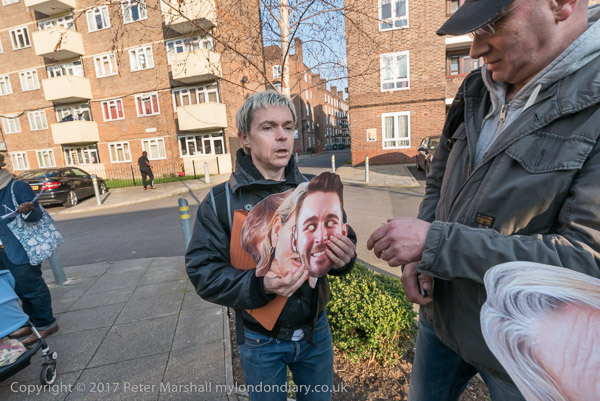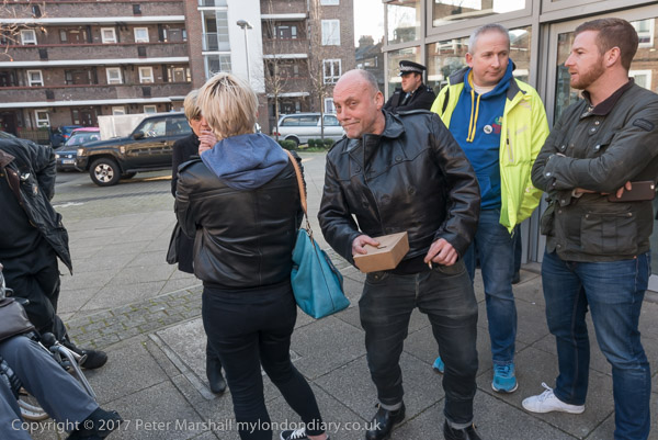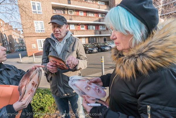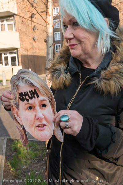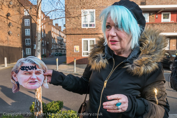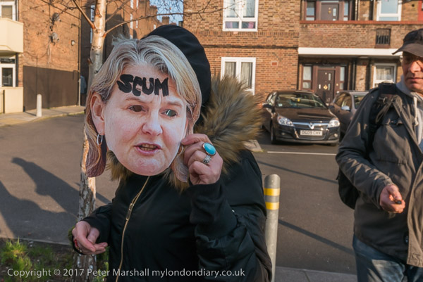 Sid Skill of Class War arrives with some masks of Leader Liz Peck