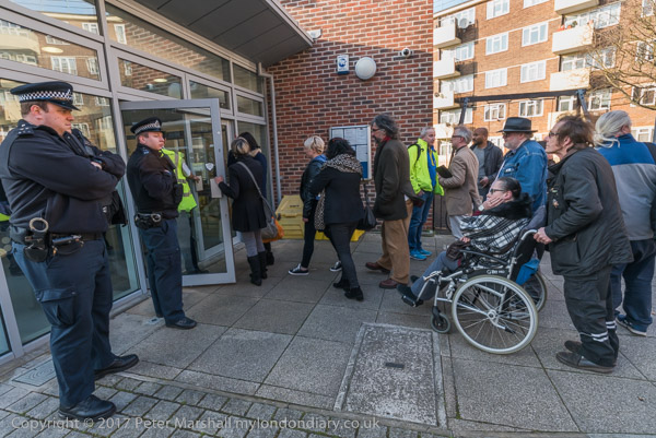 And Matthew Bennett, Cabinet Memeber for Housing rushes past the protesters