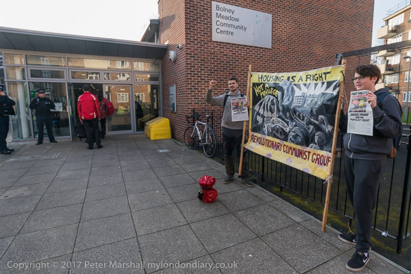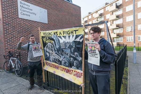 And the Revolutionary COmmunist Group pose with their 'Housing is