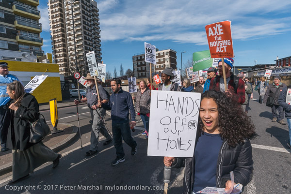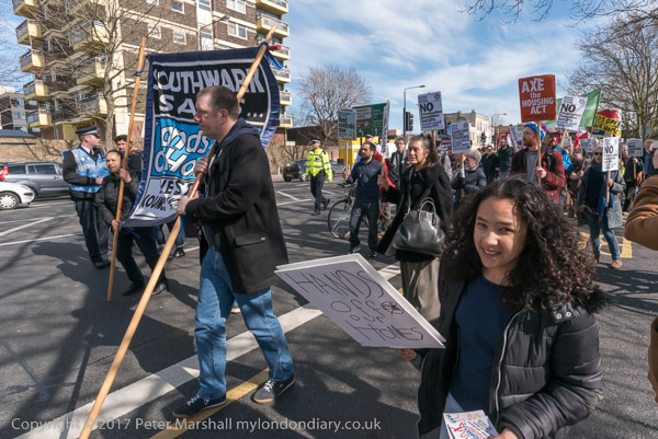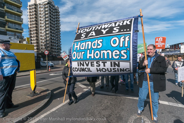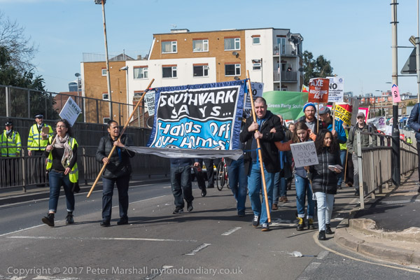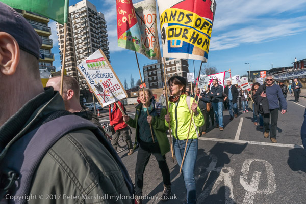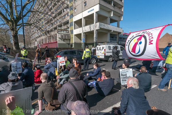 An Aylesbury estate resident speats at the sit-down on Albany Rd