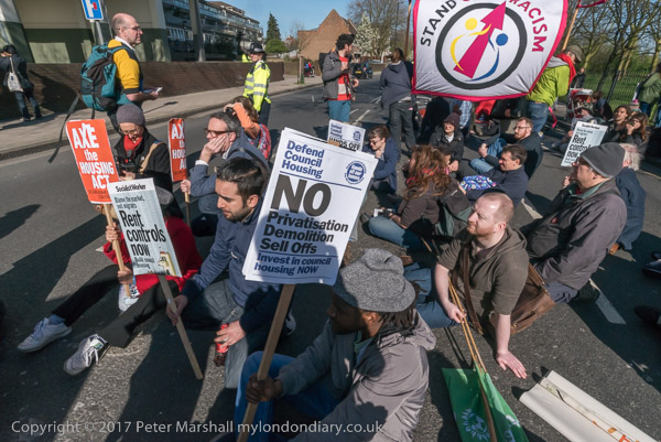 Protesters begin their sit-down on the road opposite outside Thurlow