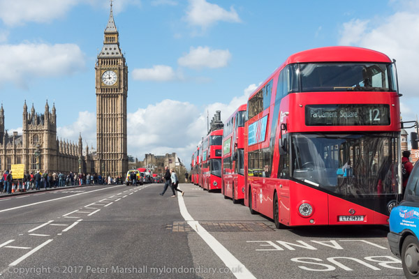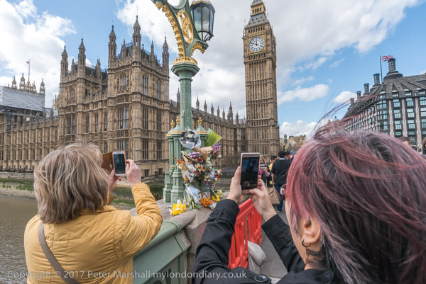 photograph the flowers left on the lampposts of Waterloo BridgeTen Days after the Westminster terror attack by a deranged driver, people