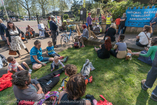 Boat dwellers, including many families, held a rally before they march to Downing St and DEFRA to demand the Canal & River Trust (CRT) stops evicting or threatening to evict boat dwellers without permanent moorings.