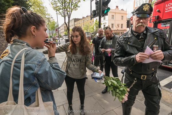 This was around a hundred yards south of where the extreme right rallies were taking place close to each other, and there were extensive barriers and many police to stop the two sides approaching each other. When I was photographing the right wing rallies I could see the UAF and hear that they were shouting 'Fascist Scum off our streets' and other slogans, and that there were also some speeches.