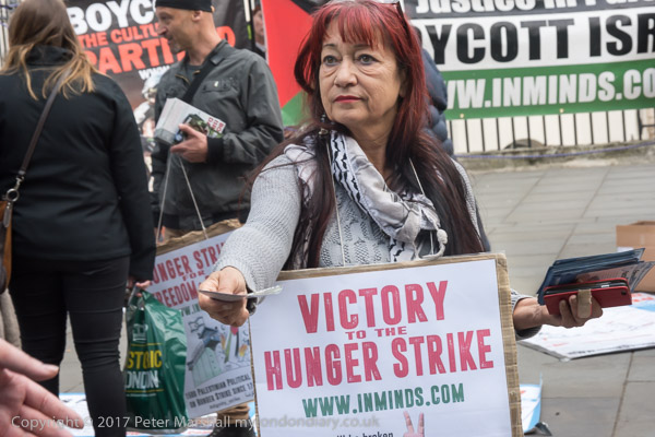 A vigil by Inminds human right group on the edge of Trafalgar Square gave information and stood in solidarity with the largest hunger strike of Palestinian political prisoners in 5 years.