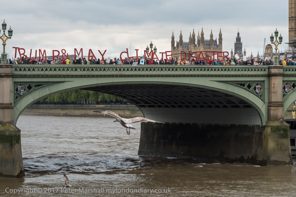 out 'TRUMP & MAY CLIMATE DISASTER' and walked with them to Westminster