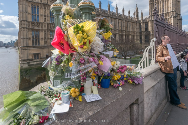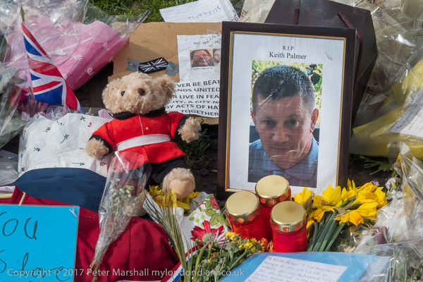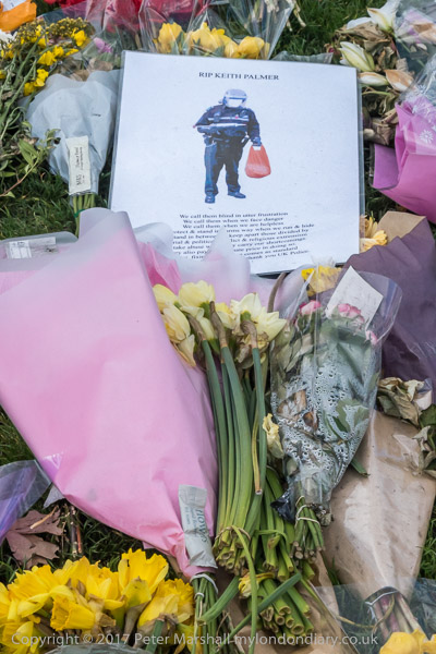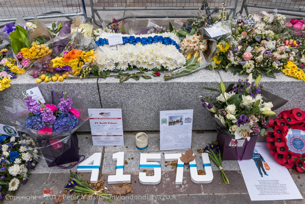 Later I photographed the tributes to Keth Palmer outside New Scotland Yard - now on the Embankment