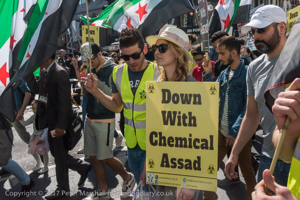 ';Say No to Assad's Poison! Prosecute Assad's terror leadership.'