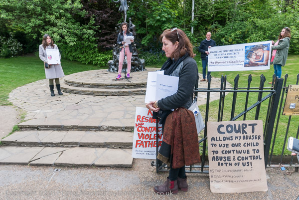 Sir Benjamin Slade poses with campaigners and victims of family courts