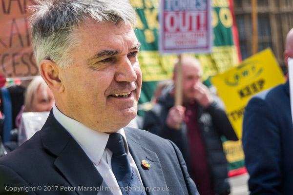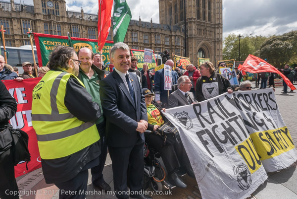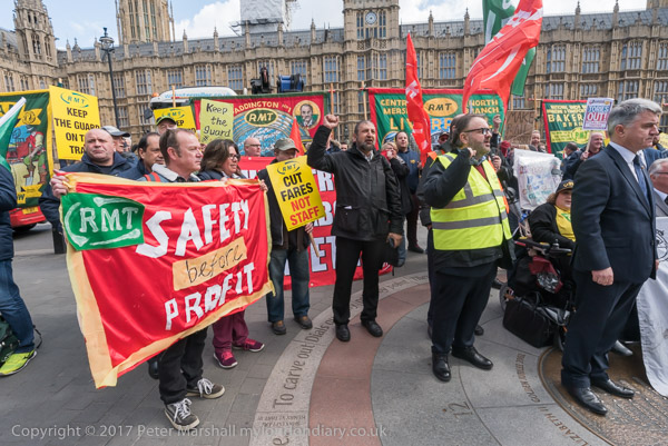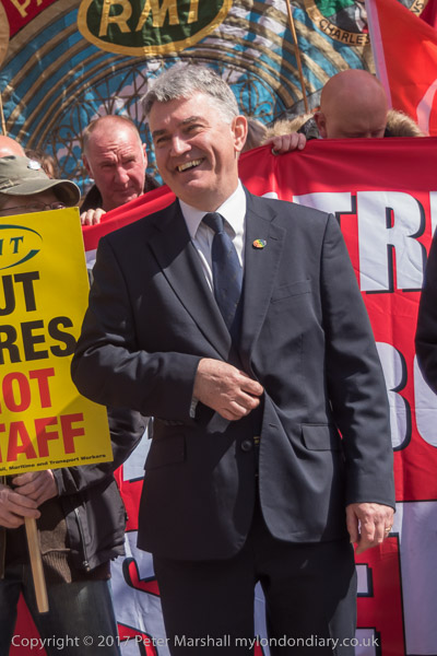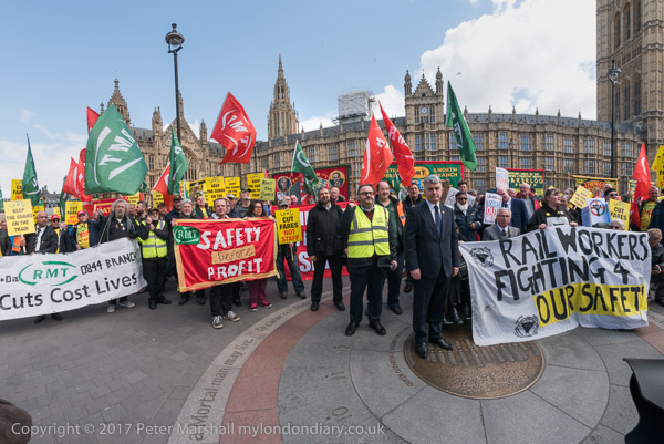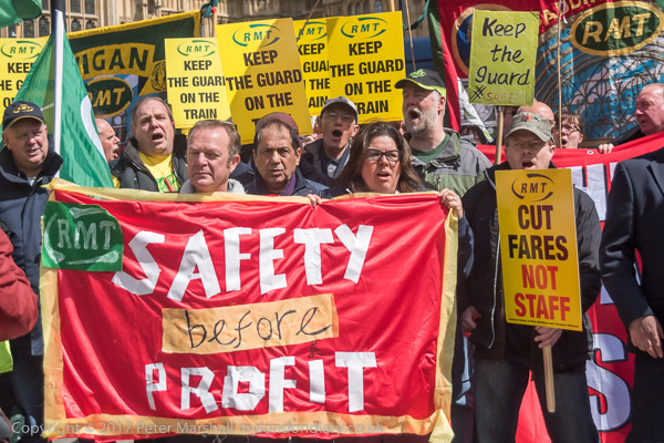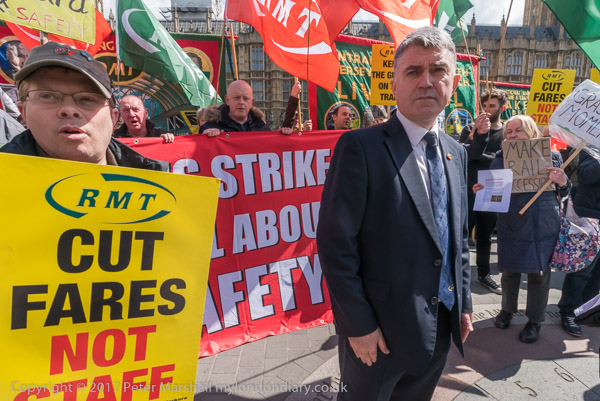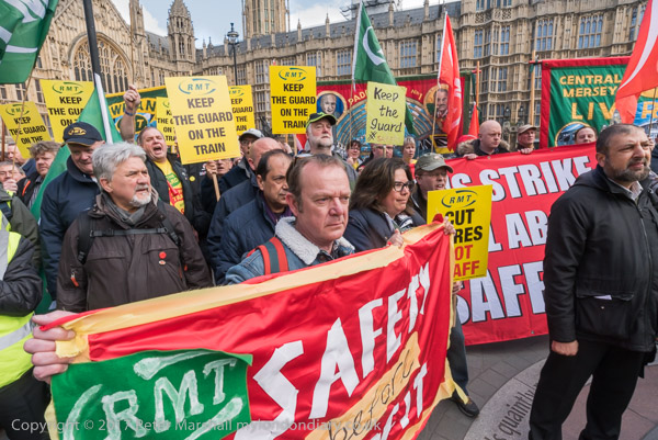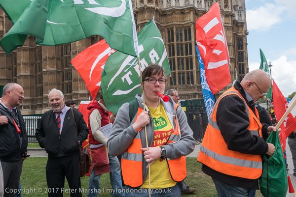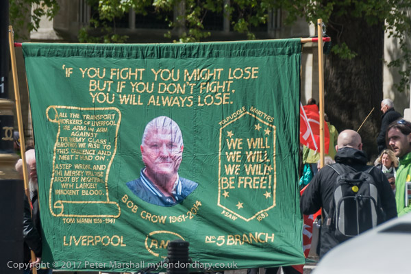 A banner from Liverpool remembers Bob Crow (1961-2014) sadly missed by trade