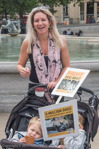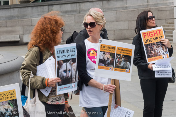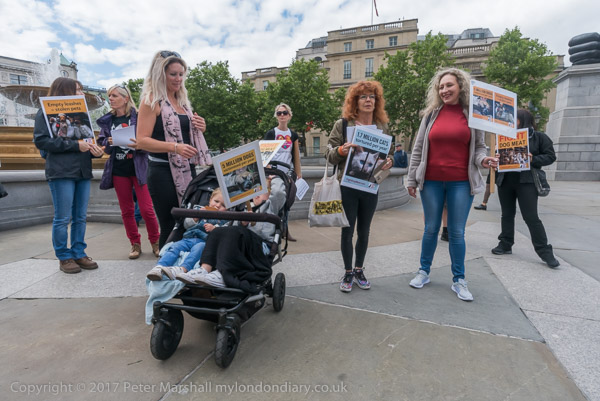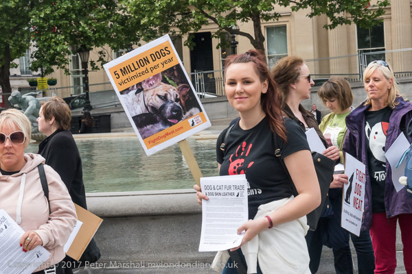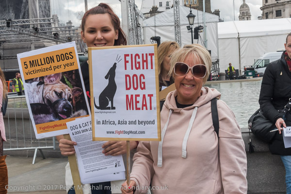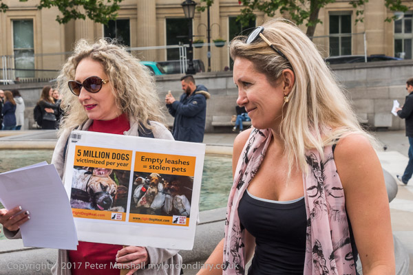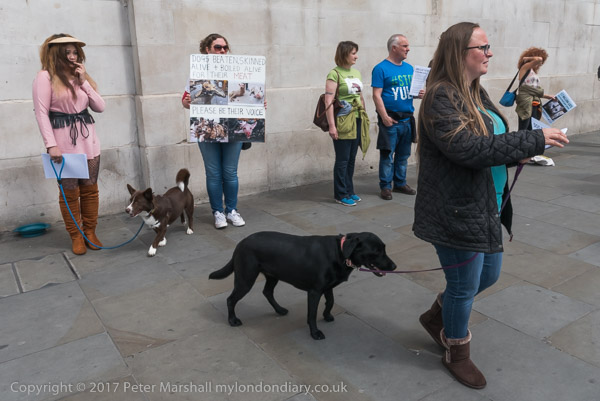 People, some with dogs, met up in Trafalgar Square but had to move to the
