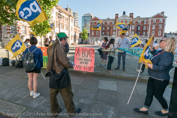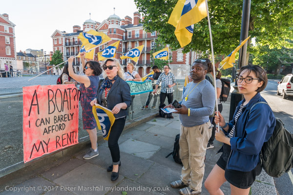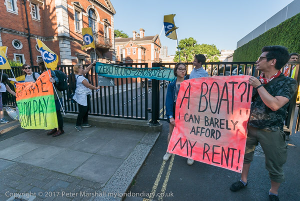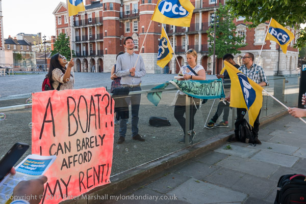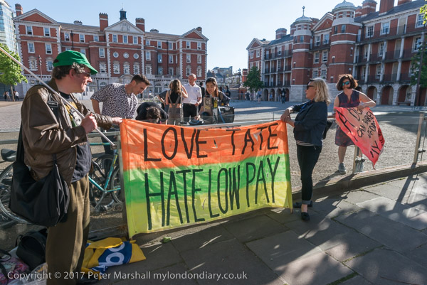 and picket at the entrance where guests are coming to Nicolas Serota's
