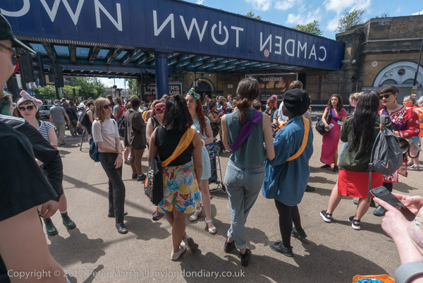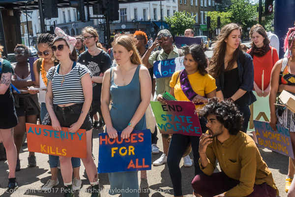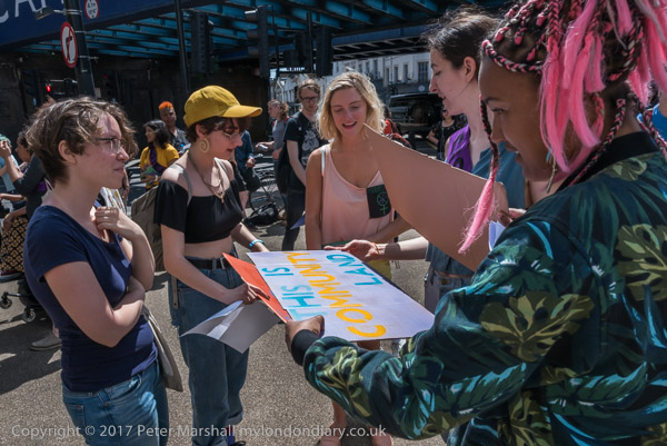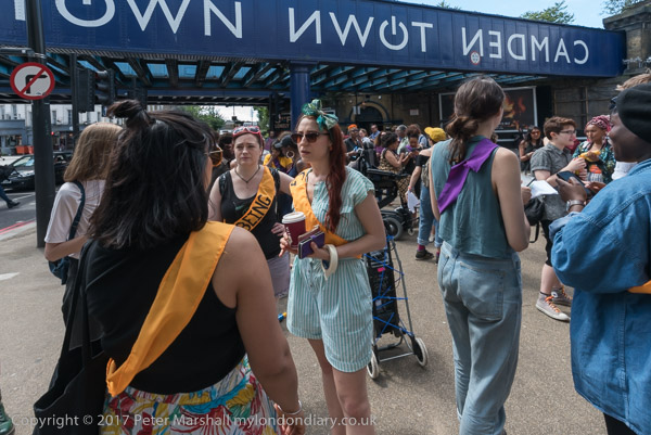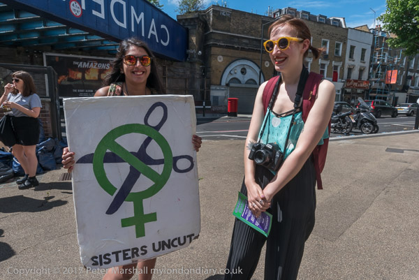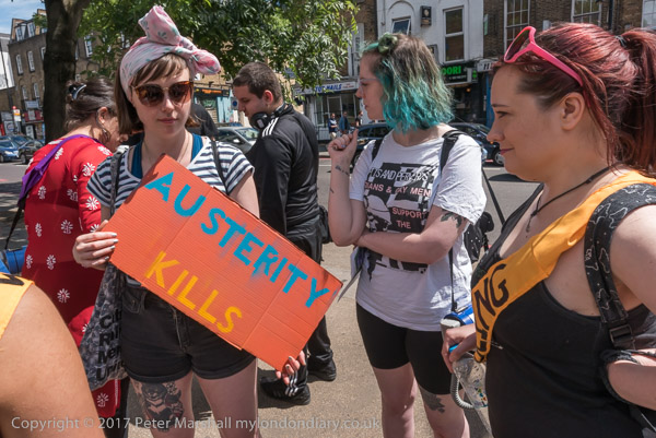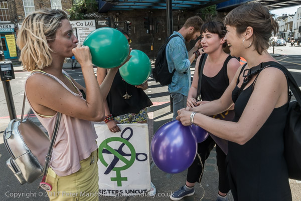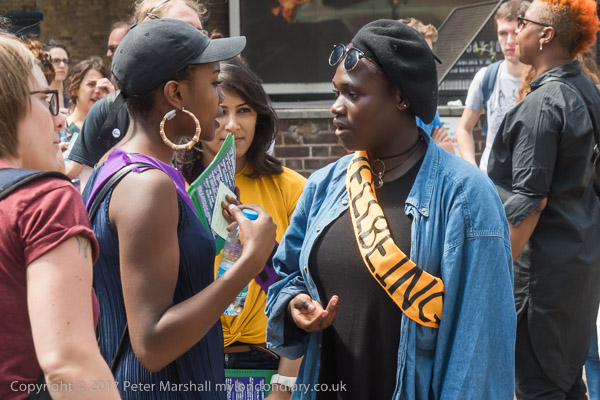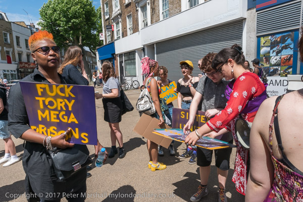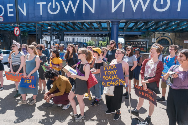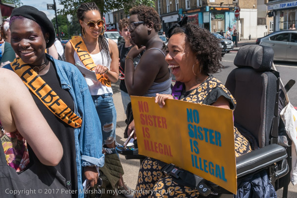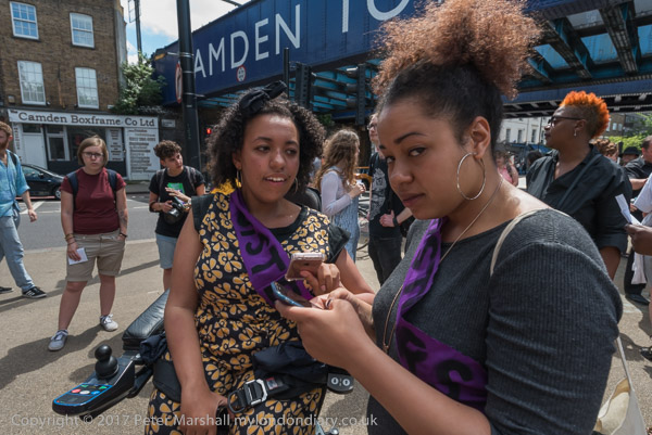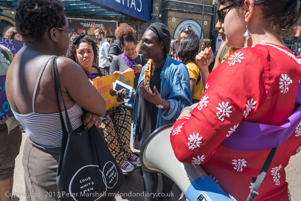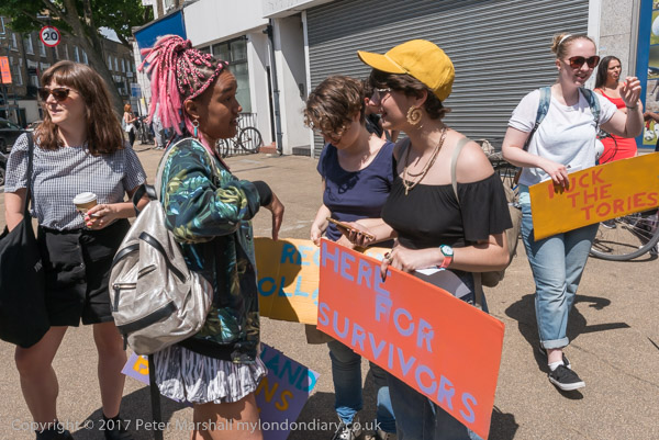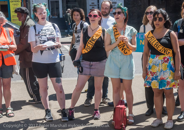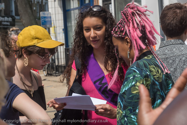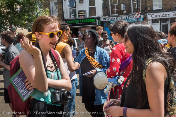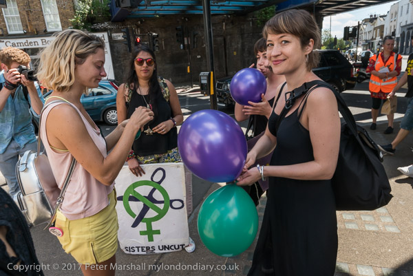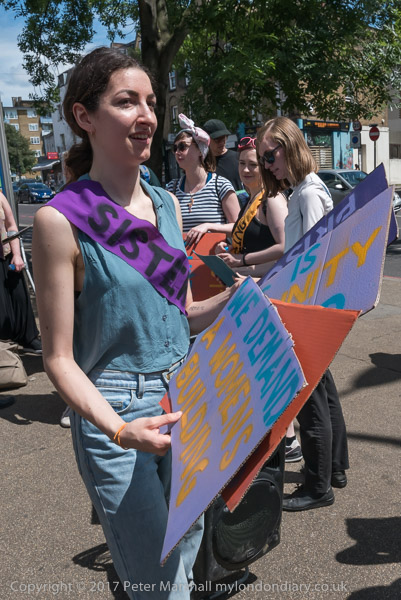 Sisters Uncut met at Camden Road. Some were wearing 'Wellbeing' sashes