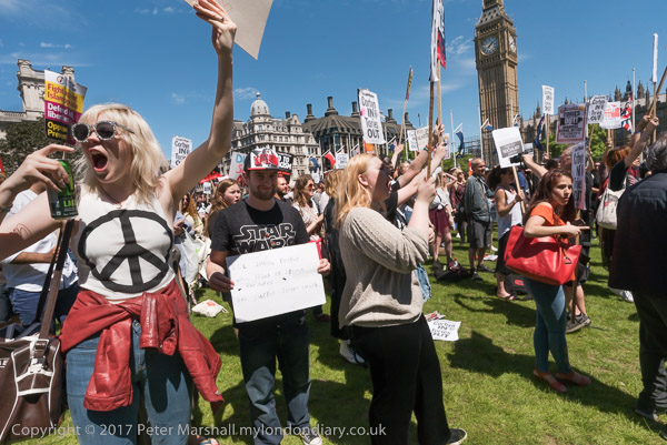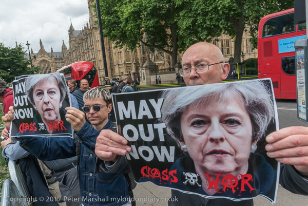 I had expected there to be more people and more protests on the day that we woke up to hear that although the Tory Party still had more MPs than any other party they had lost their absolute majority, with Labour under Jeremy Corbyn performing much better than the pundits and most opinion polls had predicted. But perhaps too many had been up until the early morning listening to the results as they were announced rather than having the sense to go to bed and get a proper night's sleep.