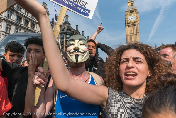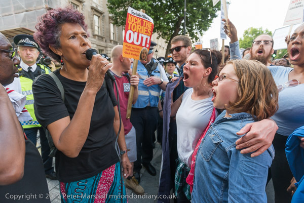 After the rally celebrating the Corbyn's leadership and performance in the General Election, most of those present walk to Downing St to celebrate anti-racism and multiculturalism and against all bigotry.