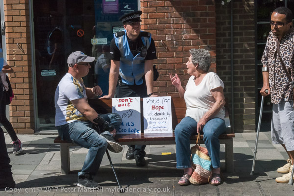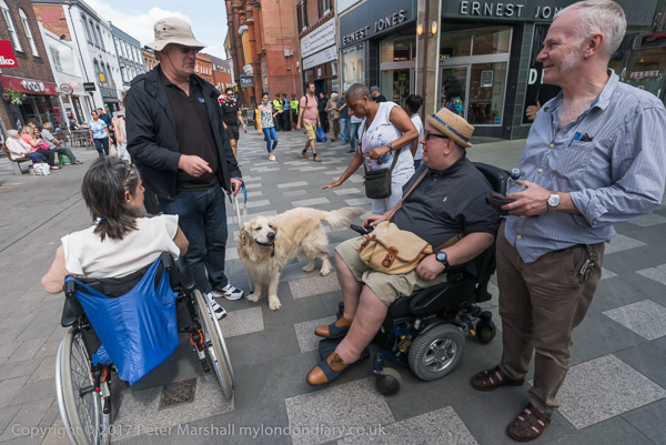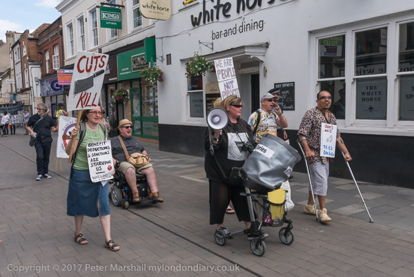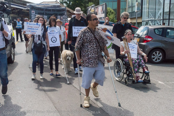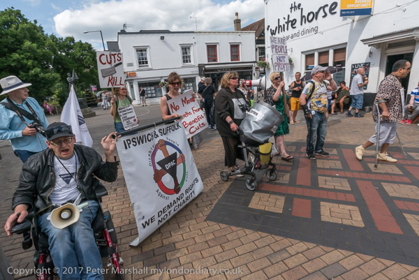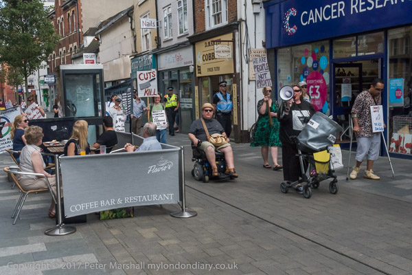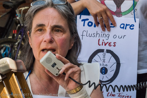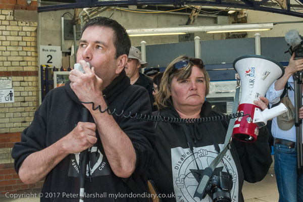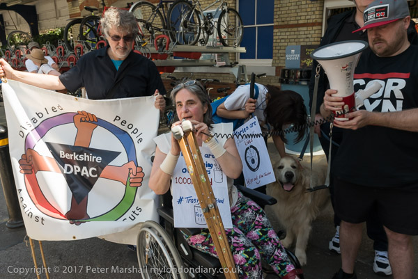 Roger Lewis of DPAC speaks, followed by other disabled protesters