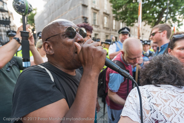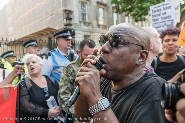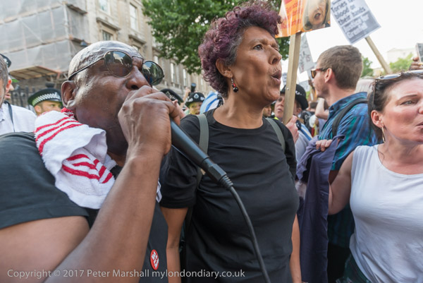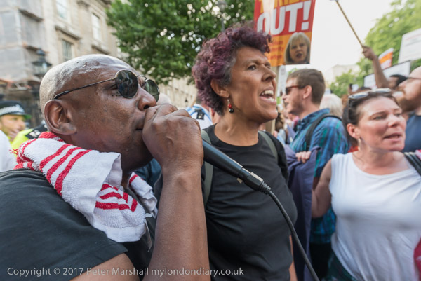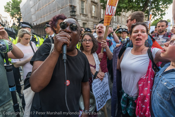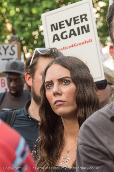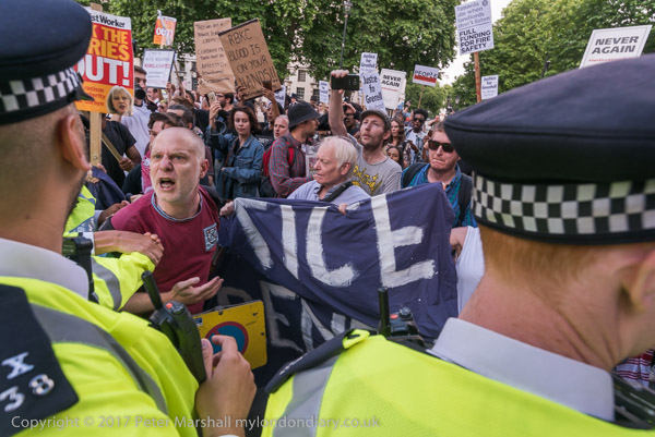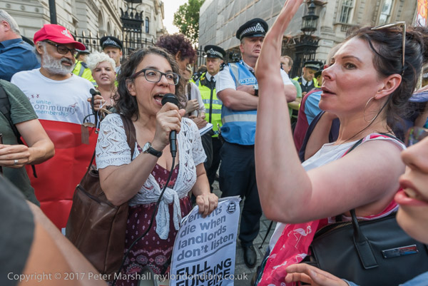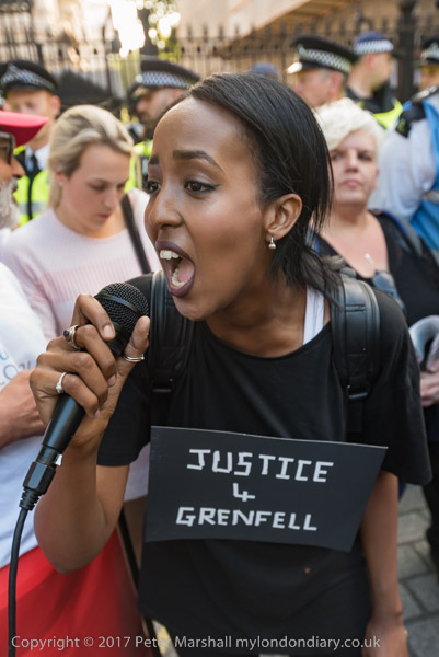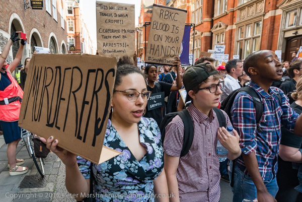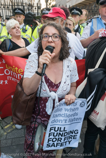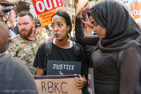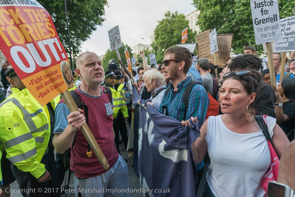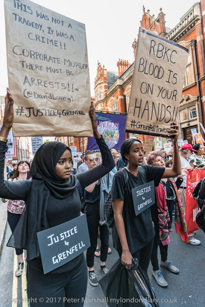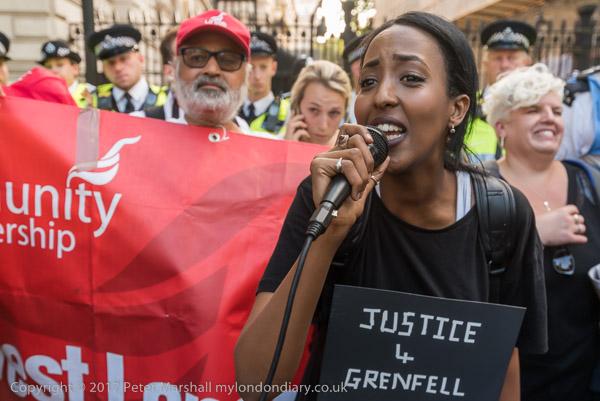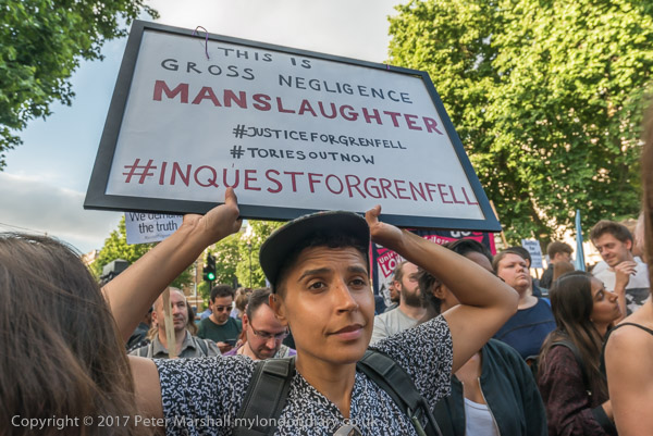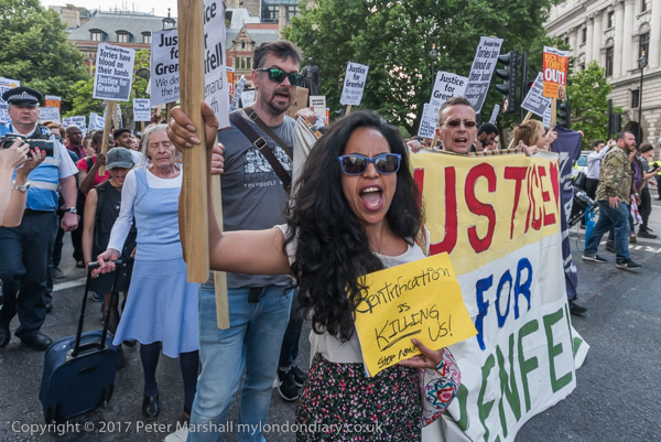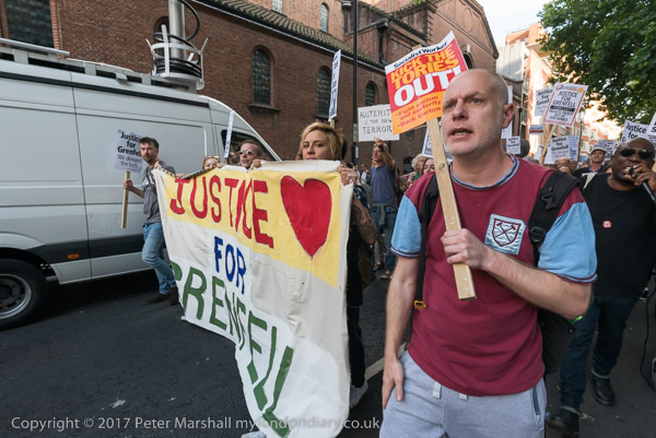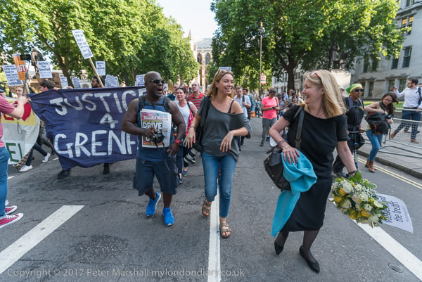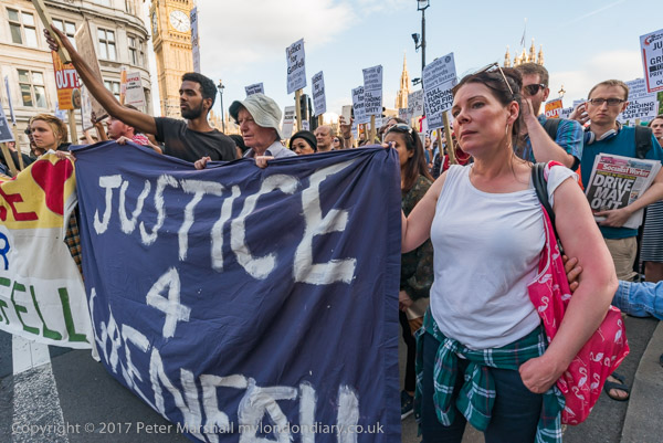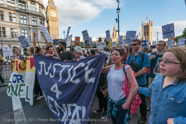 The Justice 4 Grenfell banner is carried past Parliament and up to
