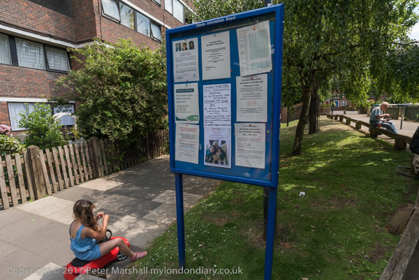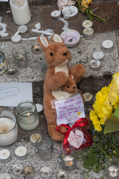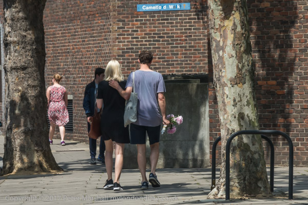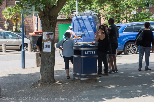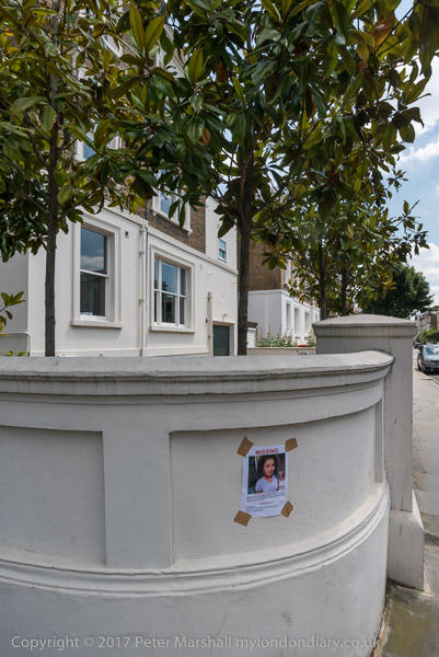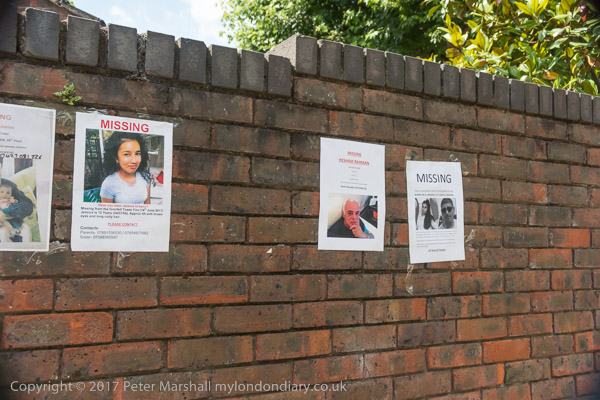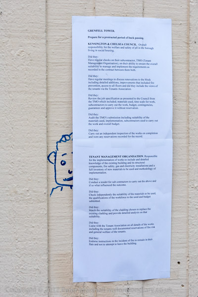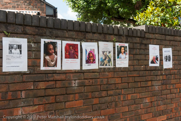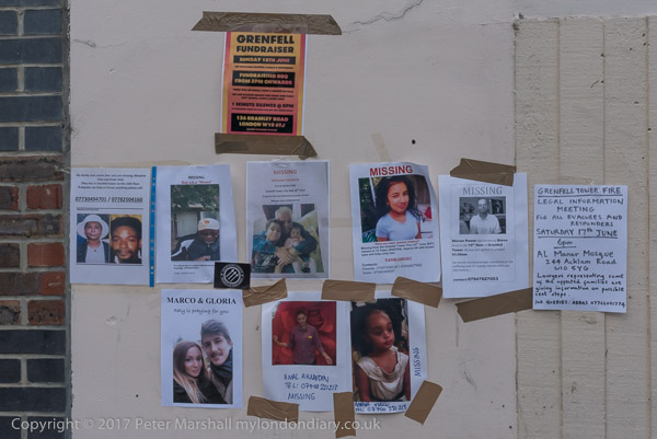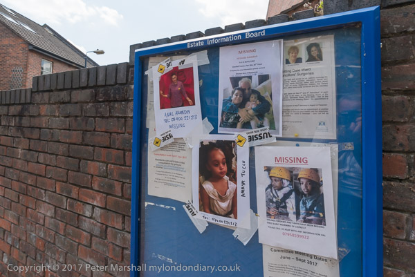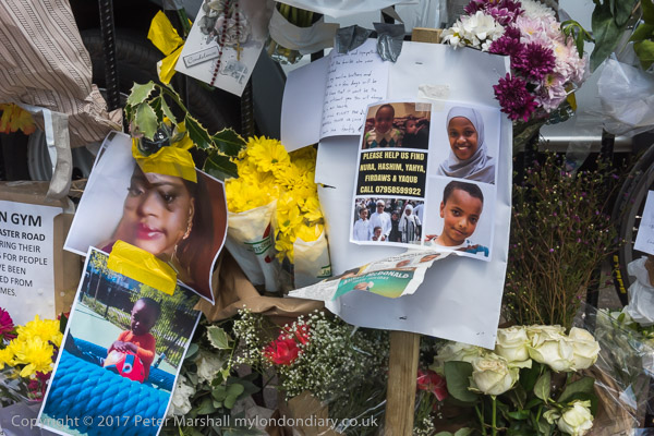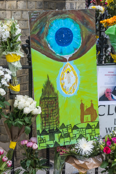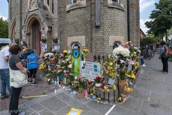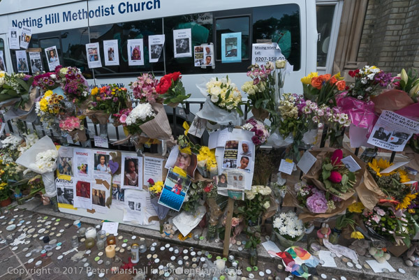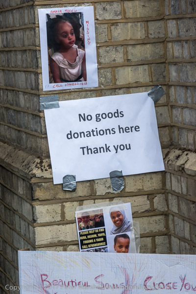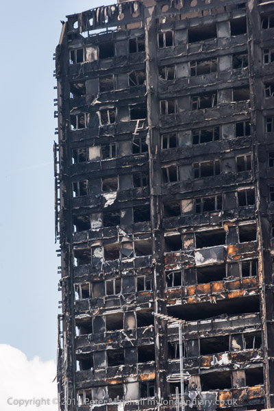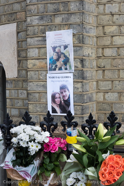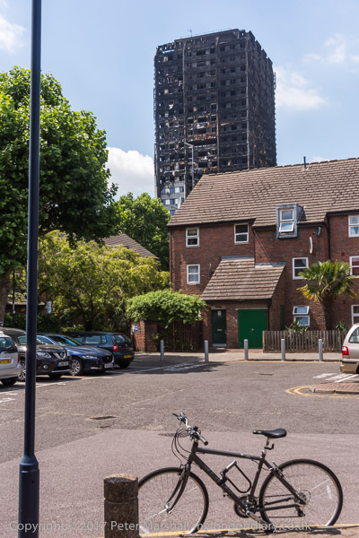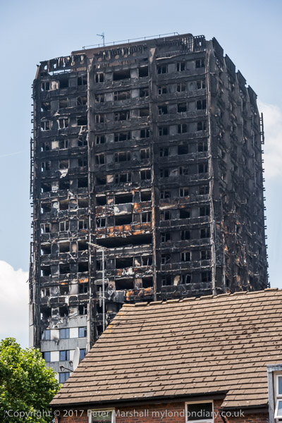 Grenfell Tower from the church. Police barriers prevent a closer approach