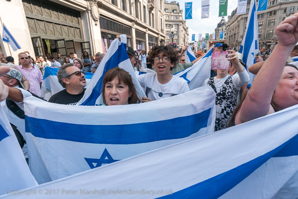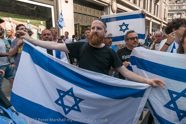 Zionists with Israeli flags block Regent St at Oxford Circus to hold