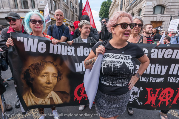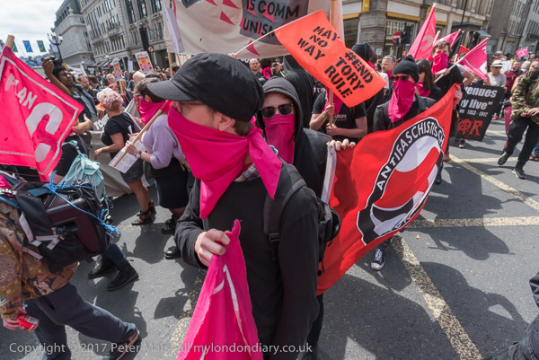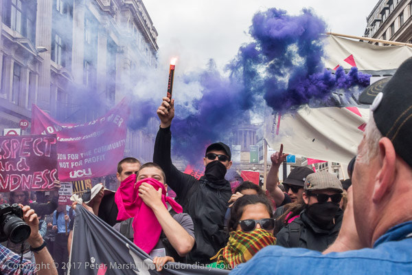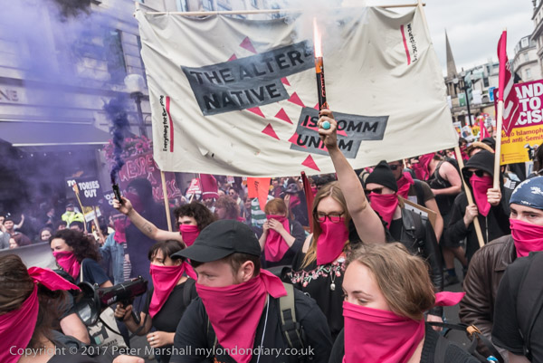 Plan C with their banner 'The Alternative Is Communism' and flares