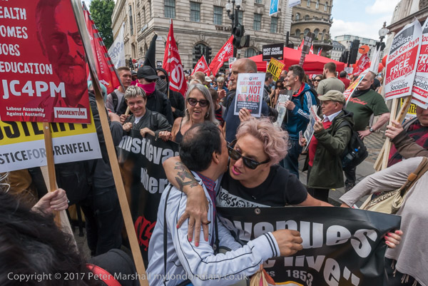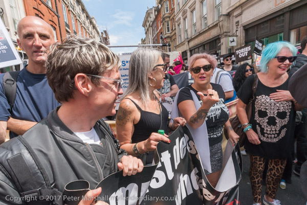 Mark Serwotka of PCS and MP Diane Abbott hold the banner at the front