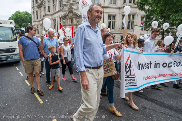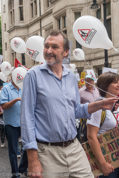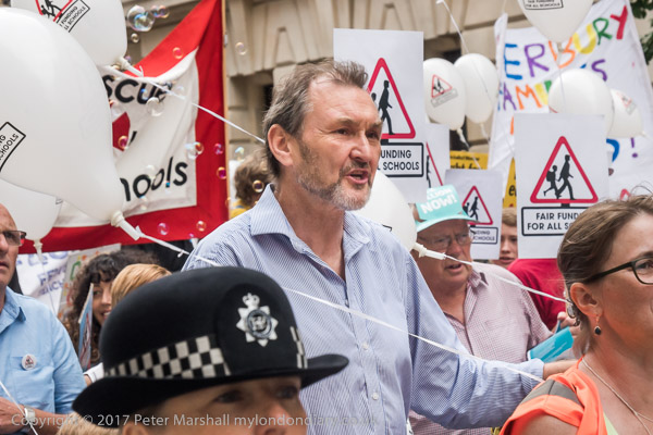 NUT General Secretary Kevin Courtney holds one end of the banner 'Invest