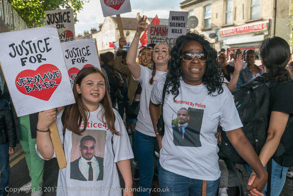 A march from Broadwater Farm to a rally at Tottenham Police Station remembered the death of Mark Duggan on the sixth anniversary of his killing by police, and also the police killing of other members of the Tottenham community - Cynthia Jarrett, Joy Gardner, Roger Sylvester, Mark Duggan and Jermaine Baker and the recent murders of Rashan Charles, Darren Cumberbatch and Edson Da Costa.