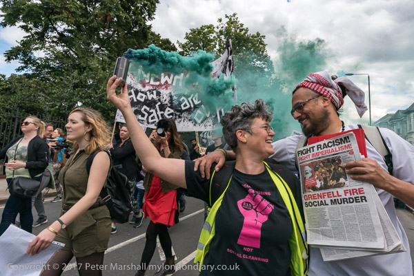 from the Justice for Grenfell campaign. A large crowd had gathered at the