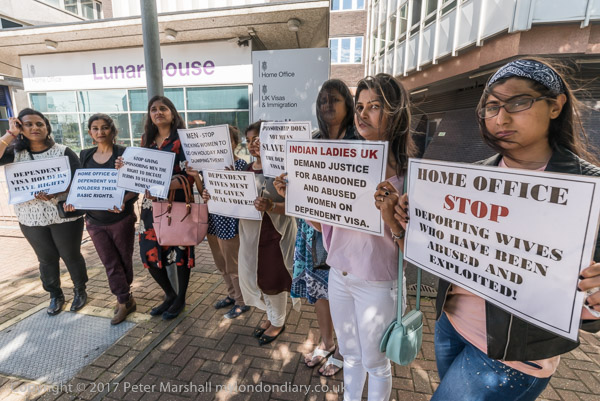 Indian women came to Lunar House in Croydon to protest at the the Home Office's failure to protect the human rights of migrant wives brought to the UK under the spousal visa system.