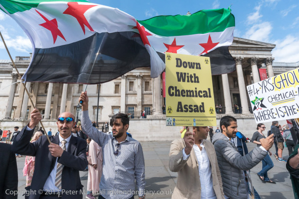 Campaigners from the Syria Solidarity Campaign marked the 4th anniversary of the Assad regimes mass chemical attacks in Ghouta with a protest in Trafalgar Square.