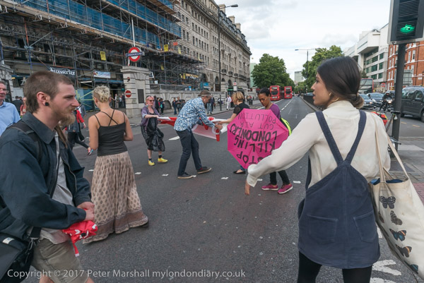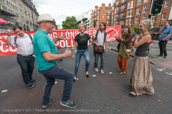 Some have umbrellas with the message 'Still Killing Londoners - and