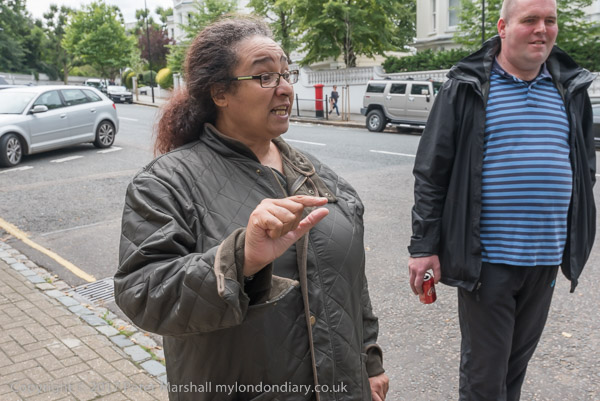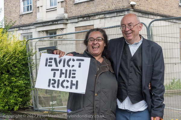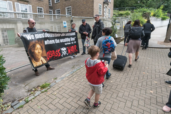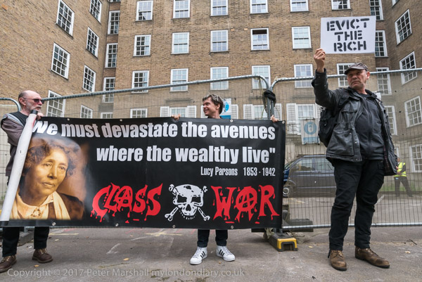 Sid Skill holds the banner - and behind him a Class War sticker on