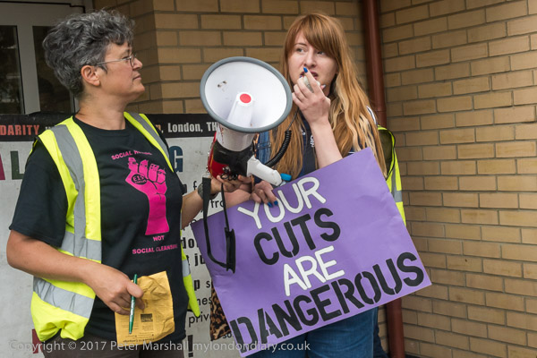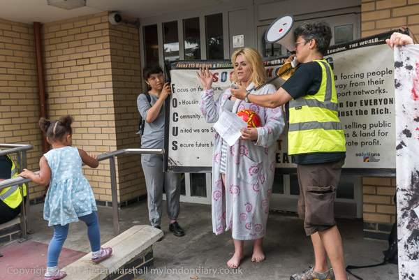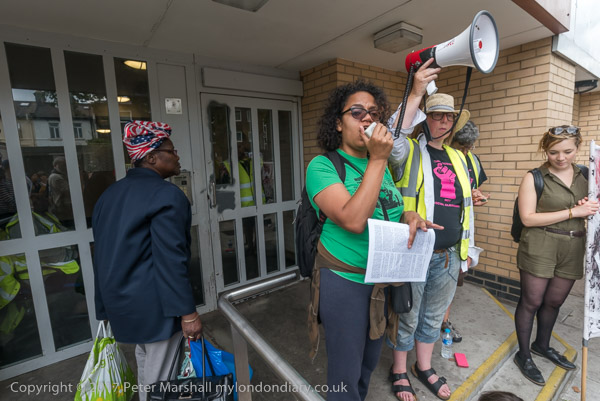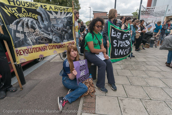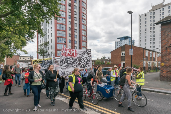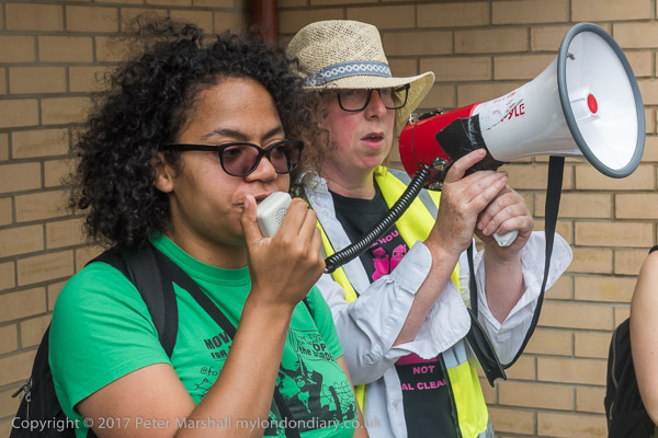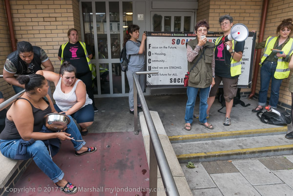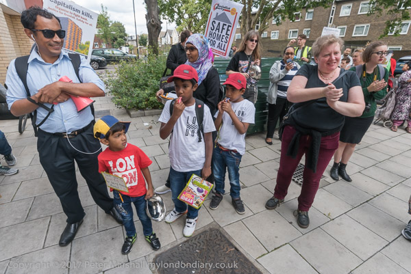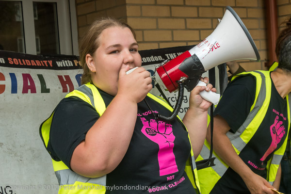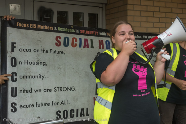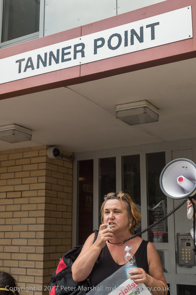 And a rally begins at the entrace to Tanner Point, with housing campaigner