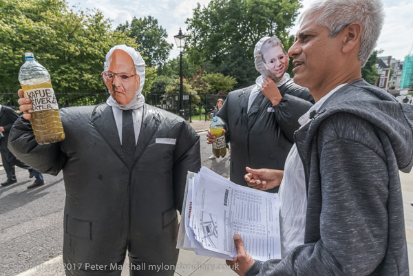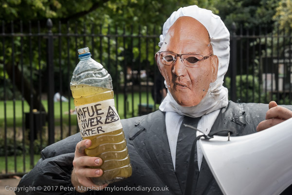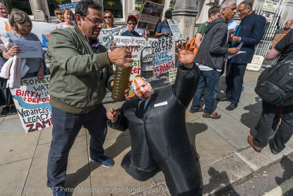 'Anil Argawal' holds a bottle of polluted 'Kafue River Water'