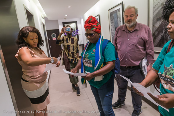 The receptionist takes the letter and promises to deliver it to Lonmin,