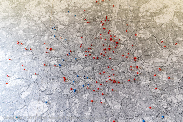 RED for Labour, Blue for Tory - around 160 London council estates