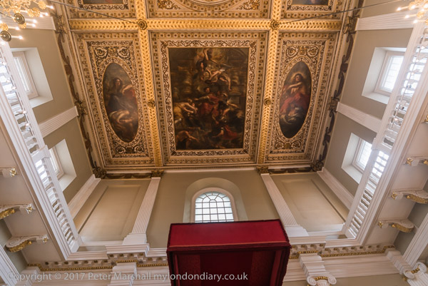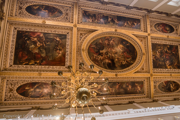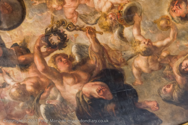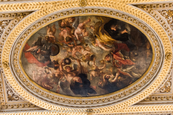 Rubens and his studio painted the ceiling in Antwerp and it was shipped