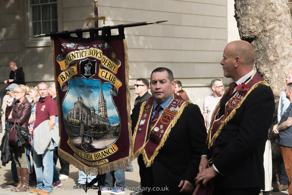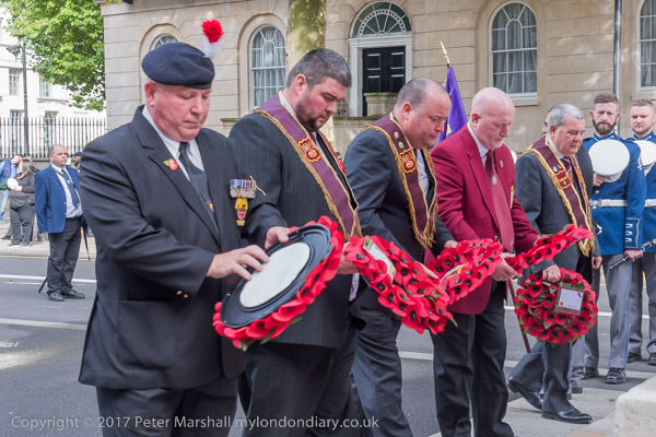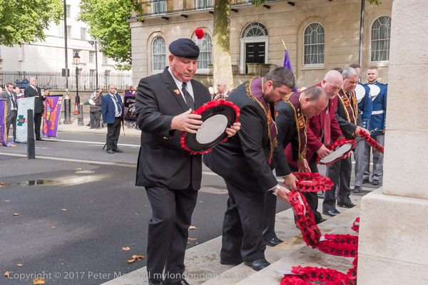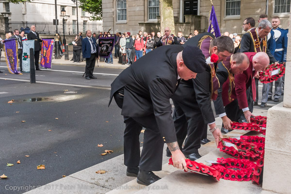 Men approach the Cenotaph with wreaths to remember Ulstermen killed