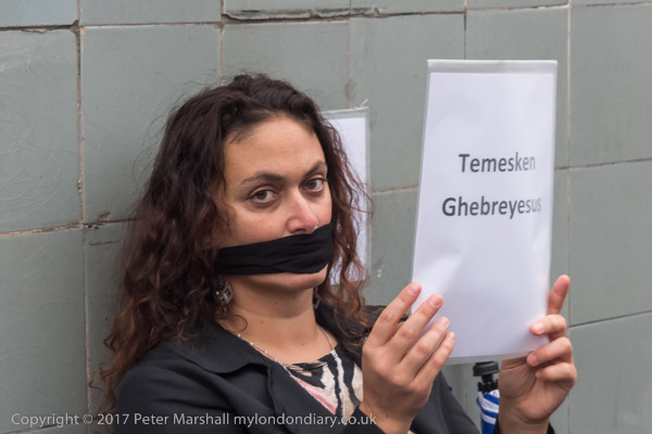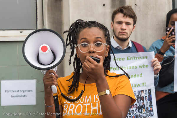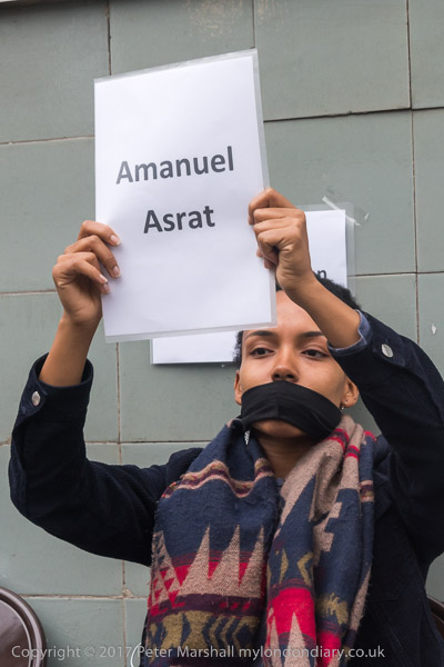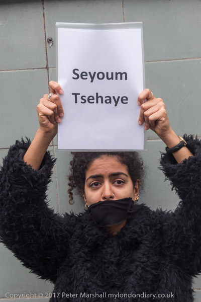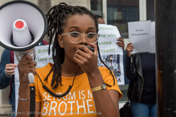 A women wears a t-shirt 'Seyoum is my Brother'