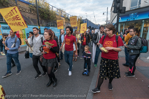 The Ritzy strikers march past Brixton Underground station and the
