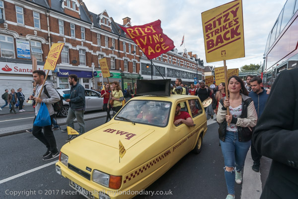 The Ritzy strikers marched around the centre of Brixton behind the