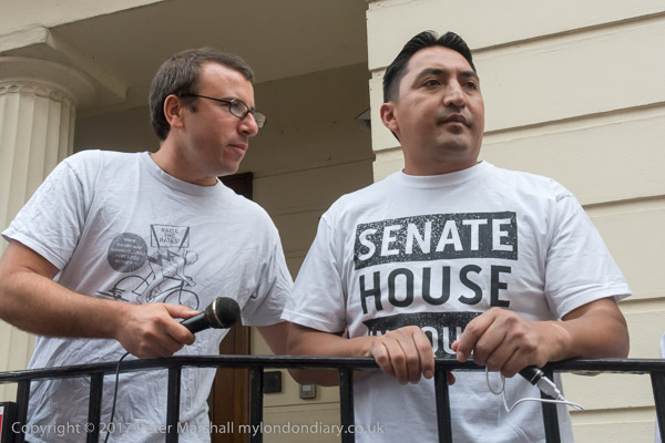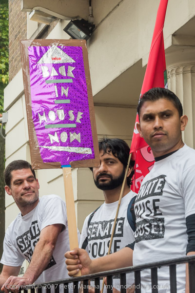 The protesters march away from Senate House to go around to the other side