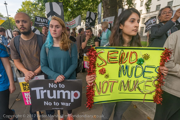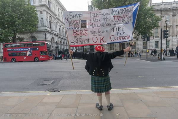 A Scottish protester had brought a banner to hold up facing Downing