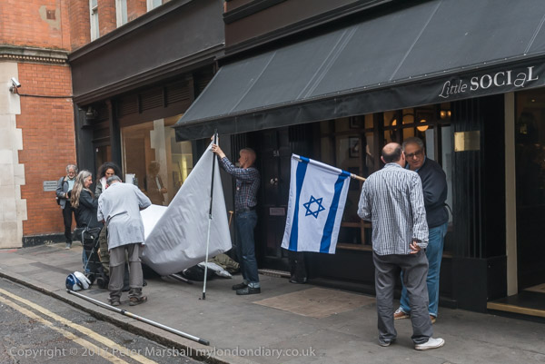 Several people including one holding an Israeli flag were waiting outside the Little Social reatuarant when the