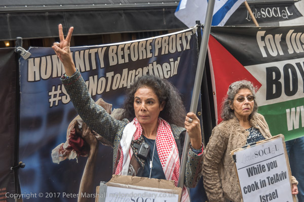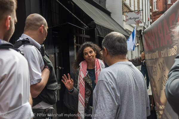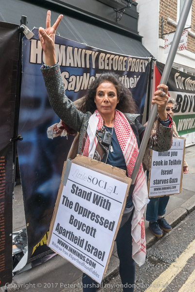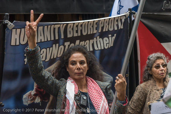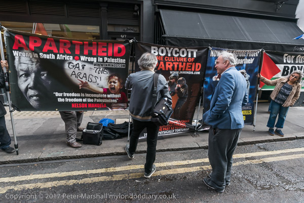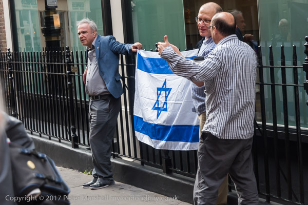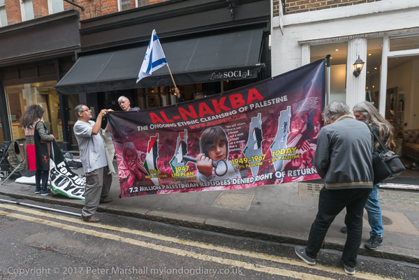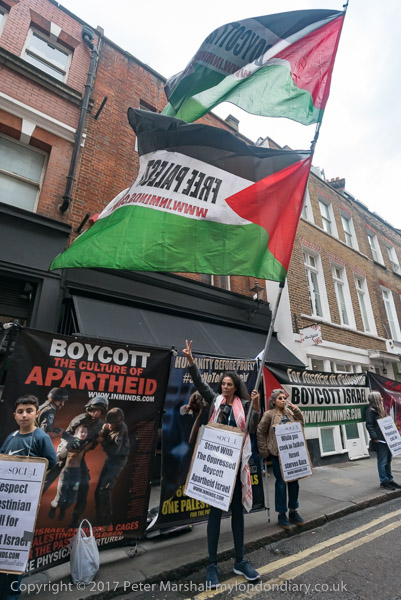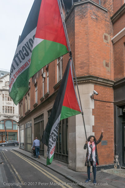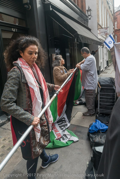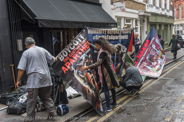 protesters arrived to put up banners - including this one showing how Palestine has almost all been taken away