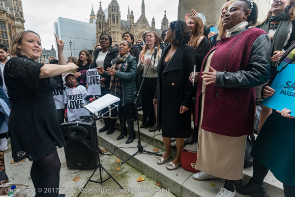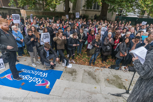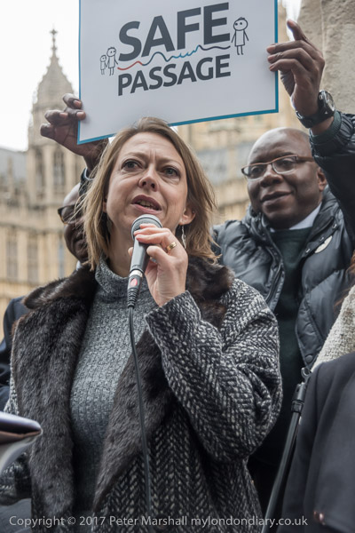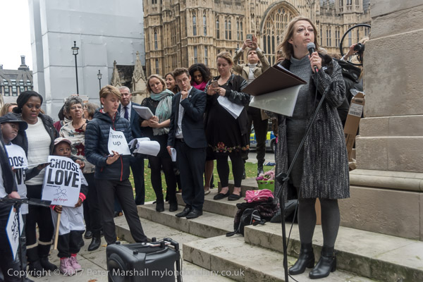 Baptist minister Juliet Kilpin introduces the Safe Passage rally