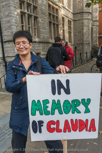 The marchers occupied the junction where cyclist Claudia Manera was hit by a lorry, closing it to traffic