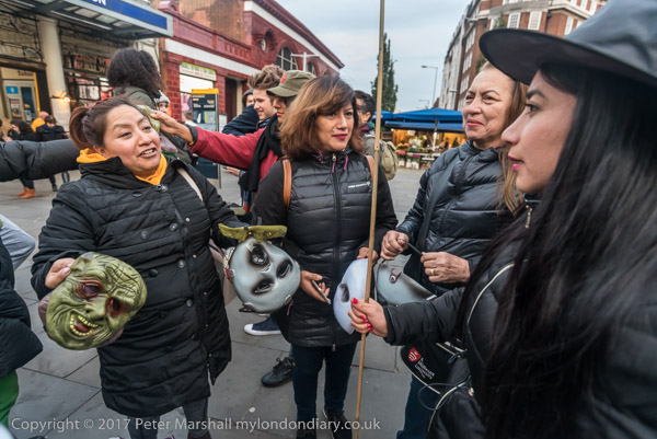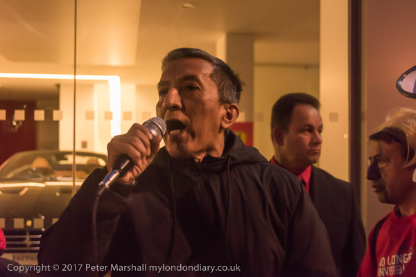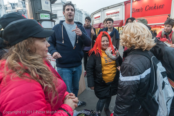 Members of United Voices of the World union and friends meet at South Kensington station for an emergency